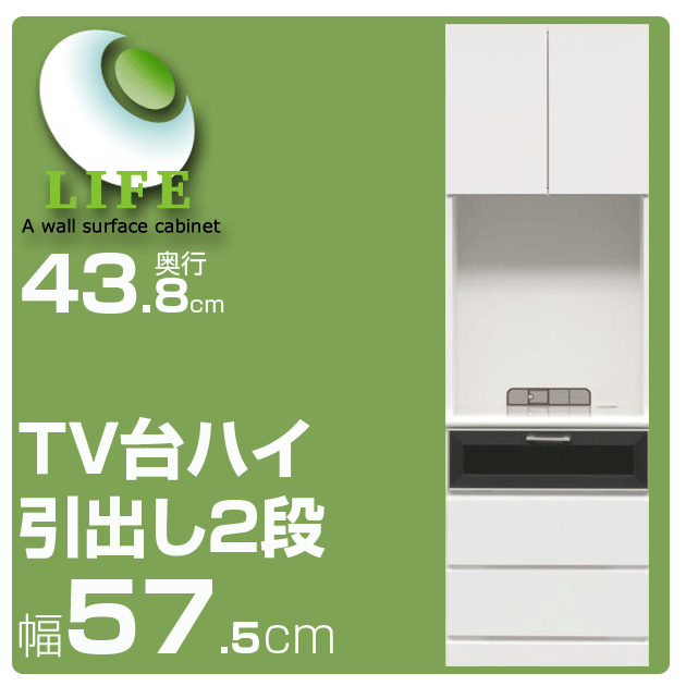 リビング壁面収納家具【ライフ】 奥行き43.8cm◆幅57.5cm TV台 ハイタイプ引出し2段 ホワイト ブラウン ナチュラル【代引不可】
